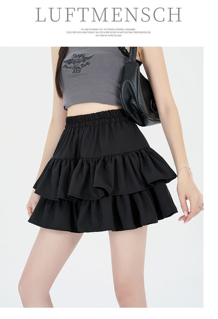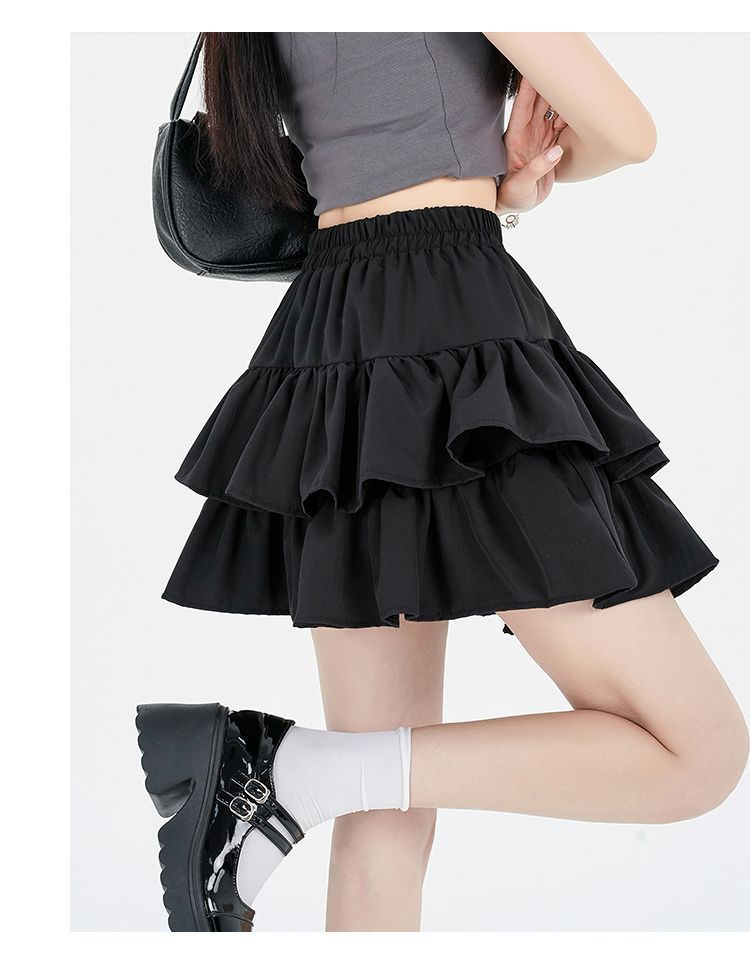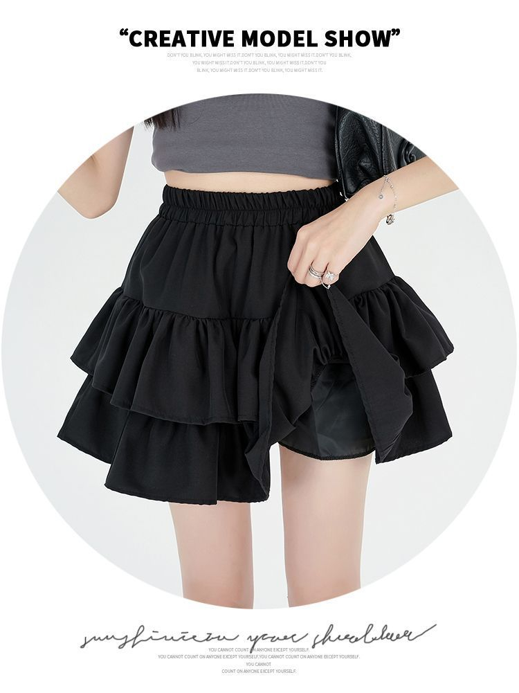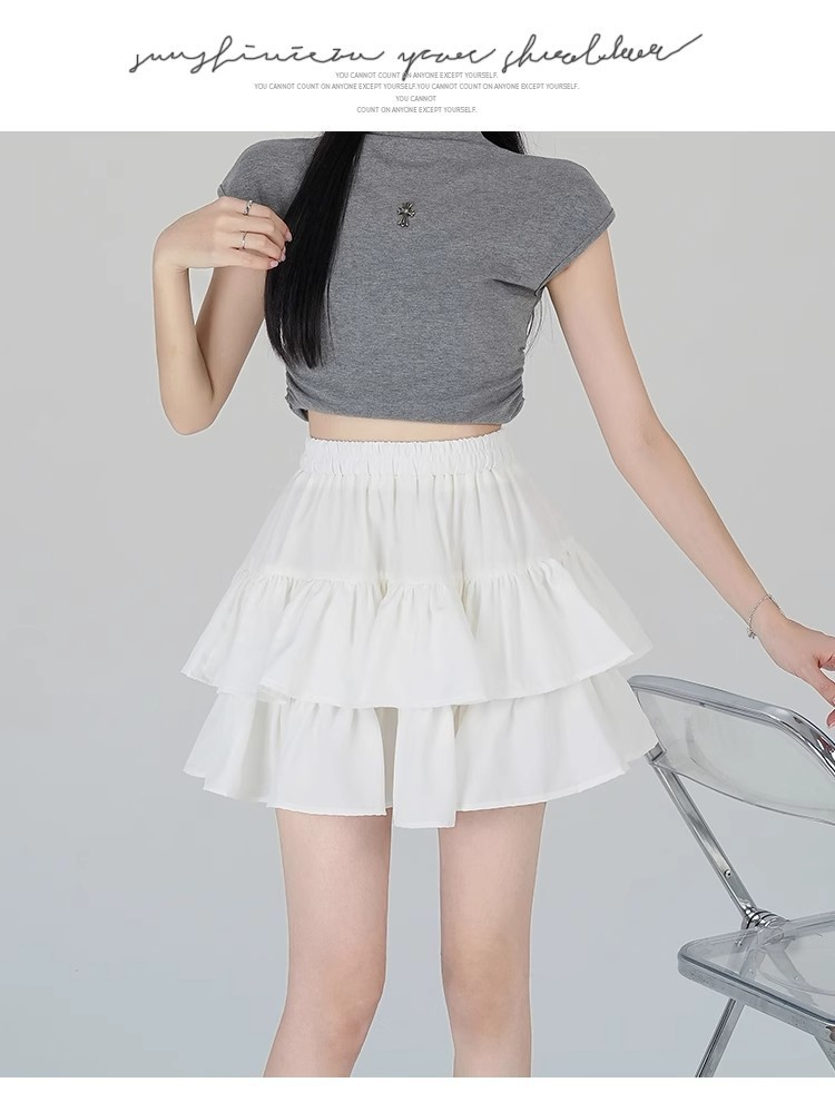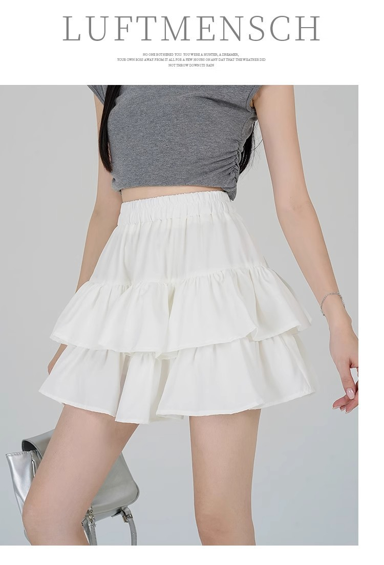 小柄女性向け 春夏フリルスカート ハイウエスト ミディ丈 ケーキスカート